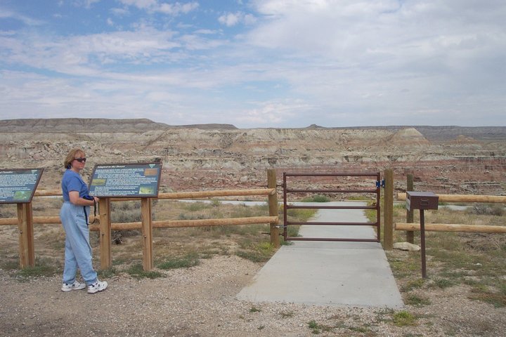 Kathy alongside the wagon ruts of emigrant pioneers on the Oregon Trail, South Pass, Wyoming |