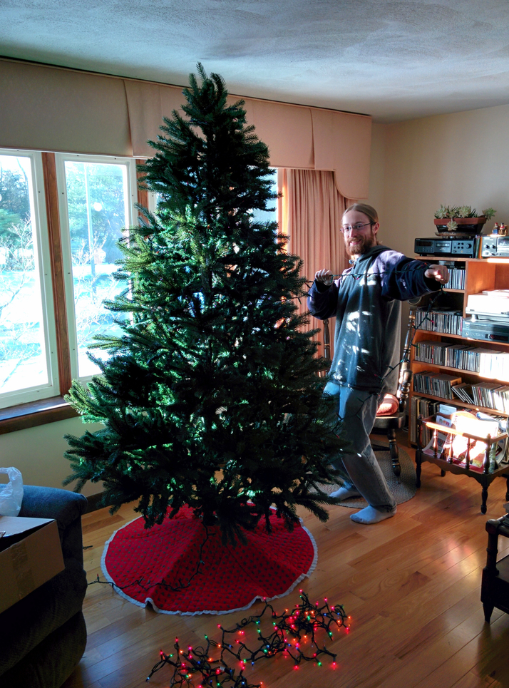 Christmas Tree TrimmingKevin and JoAnne were visiting. What to do? Advent was tomorrow so Kathy’s instinct kicked in and she persuaded everyone to help set up the Christmas tree.