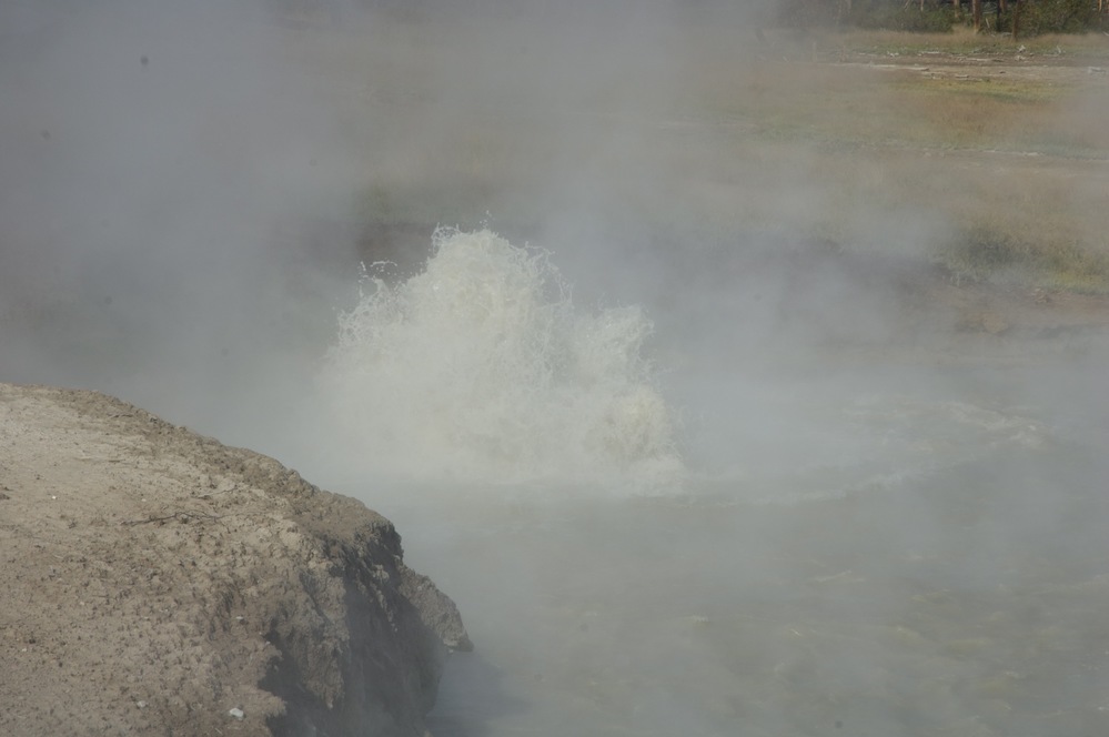 Next, a series of geysers and hot pools along the Firehole River Drive. It is really bizarre to see a flowing stream and realize you had better not touch it or you will burn your hand.