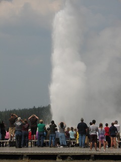 Old Faithful still draws the crowds. Believe it or not, Scott skipped his chance to view this geyser during our trip to Yellowstone eight years earlier.