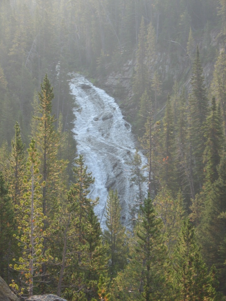In the evening we had a great time at a show at the Virginia City Opera House, viewing an old melodrama followed by a set of vaudeville acts. YellowstoneThe route to Yellowstone took us by Quake Lake, the site of the 1959 earthquake in the Madison River Valley. The mountainside slid down and 90 million tons of rock traveled across the river in less than one minute, damming one end and creating a lake. Several campgrounds were wiped out and 19 people were never found. That earthquake brought on many changes to the geyser activity in Yellowstone Park. The scar is still perfectly visible where the earthquake caused the mountainside to collapse and rush across the valley.